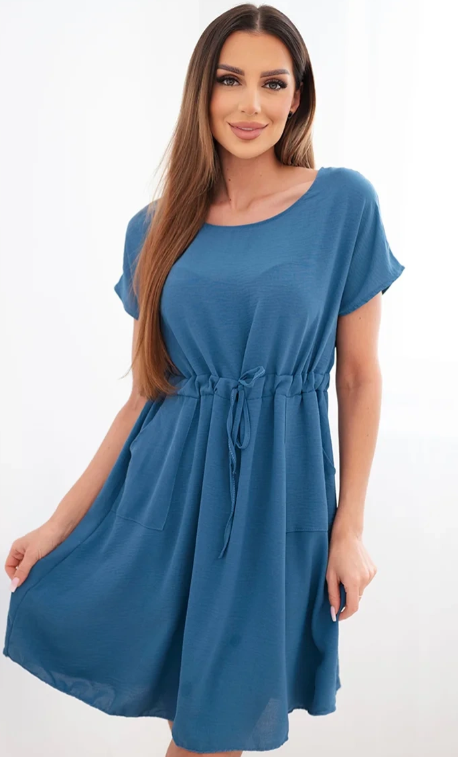 Dámske šaty s krátkym rukávom a viazaním v páse sú vynikajúcou voľbou pre ženy, ktoré si cenia pohodlie a módny, uvoľnený štýl. Voľnejší strih zaručuje komfort pri nosení a nastaviteľné viazanie v páse umožňuje prispôsobiť šaty postave, jemne ich zvýrazňujúc.