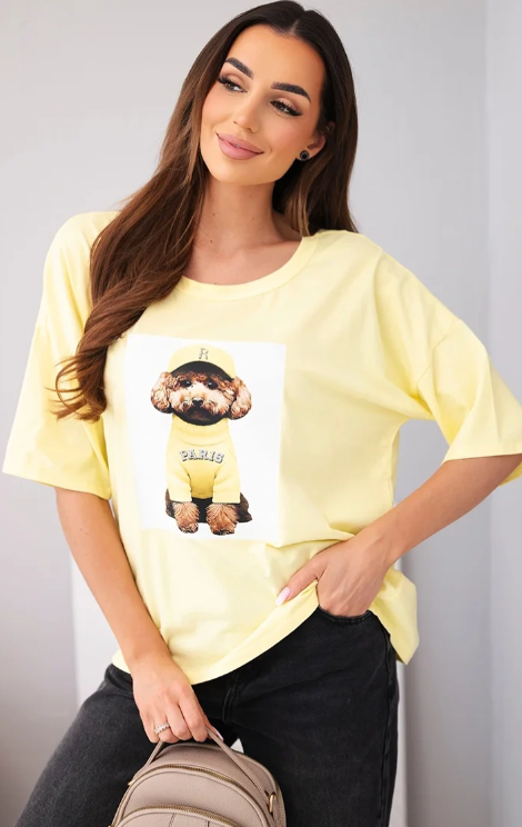 Dámska bavlnená blúzka v voľnom strihu je ideálnou ponukou pre ženy, ktoré si cenia pohodlie a módny, casual štýl. Model vyniká efektnou potlačou vpredu, ktorá dodáva celku originálny charakter a púta pozornosť. Oversize strih zabezpečuje, že blúzka krásne padne na postavu, poskytujúc voľnosť pohybu a pohodlie počas celého dňa.